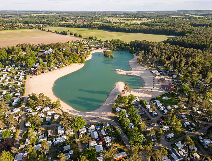 The popular family campsite in the Lüneburg Heath offers an unforgettable vacation paradise for young and old. With a mixture of indoor and outdoor activities for all weathers: from the bathing lake with sandy beach to the wave pool in the fun pool, adventure golf to the indoor playground Piratennest. The highlights also include a riding stable, numerous playgrounds and sports fields, cosy restaurants, rental bathrooms with whirlpool, a varied entertainment program and many other leisure activities – for lots of fun and vacation enjoyment for the whole family.