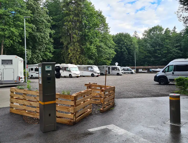 Unser System funktioniert gleich wie bei einer Parkgarage. Der Gast reist an, bekommt bei der Einfahrtssäule ein Ticket. Mit diesem Ticket kann er Strom und Wasser aktivieren. Verrechnet wird der Pauschalpreis für eine Nacht und der jeweilige Verbrauch von Strom und Wasser zusätzlich. Bezahlt wird vor der Abreise beim Zahlterminal. Diese technisch hochwertige Ausstattung wurde von der Firma CampConcept, mit Sitz in Kärnten, entwickelt. Als einzige Firma in Österreich bietet diese Firma alles aus einer Hand an. Sowohl die Ausstattung für Ein- und Ausfahrt, als auch die Stromsäulen, Wassersäulen und Chemie WC Entleerung.