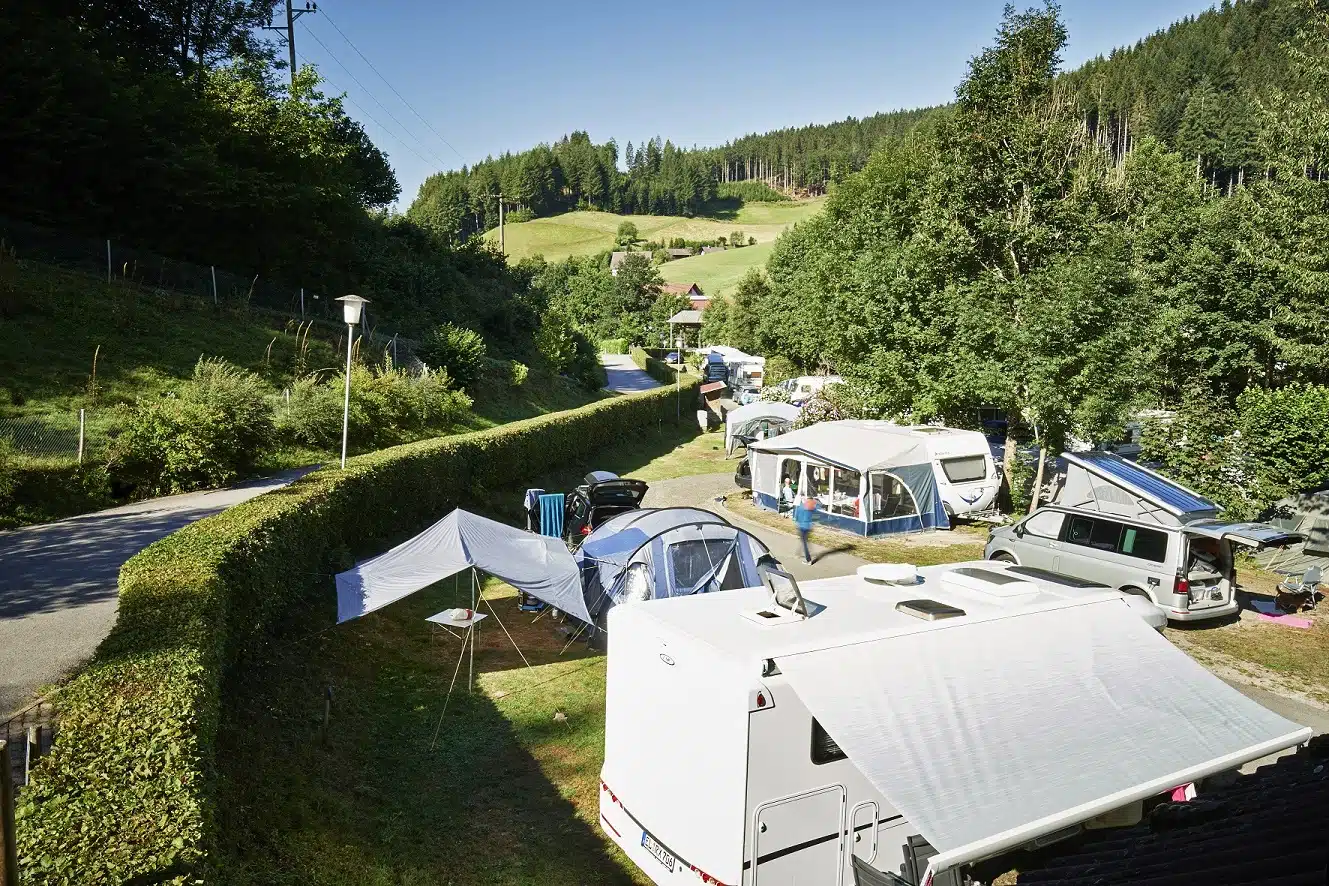 Der Platz ist terrassenförmig angelegt – Camping im Schwarzwald also in seiner schönsten Form, egal ob Sie mit dem eigenen Wohnwagen, Wohnmobil oder Zelt anreisen oder ob Sie eine unserer Mietunterkünfte nutzen.